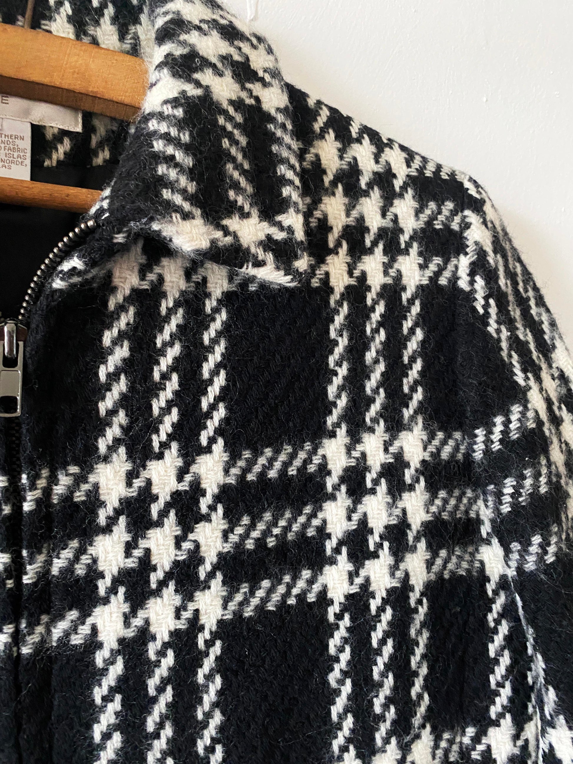 Vintage 1990s Pure Wool Black & White Check Jacket 12